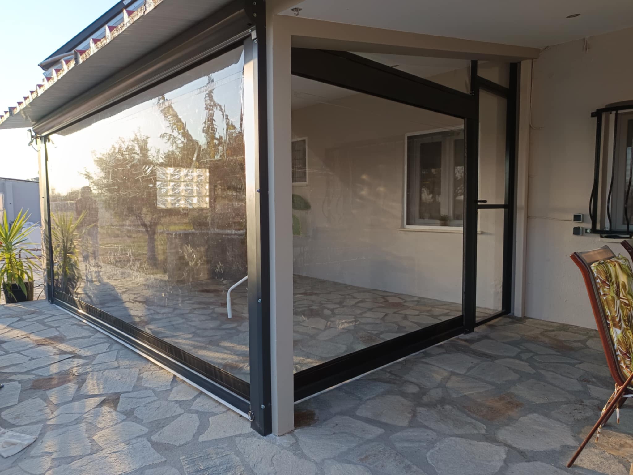 Διαφανής προστασία από αέρα και βροχή, ιδανική για επαγγελματικούς και οικιακούς χώρους. Εξασφαλίζουν ορατότητα και άνεση όλες τις εποχές.